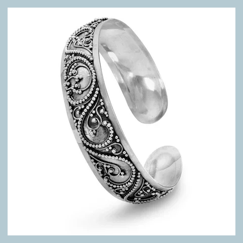 Oxidized Beaded Filigree Bali Cuff