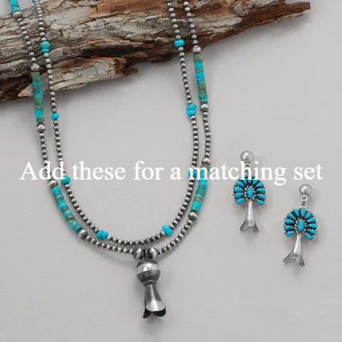 18" Turquoise Heishi, Oxidized Bead and Squash Blossom Necklace