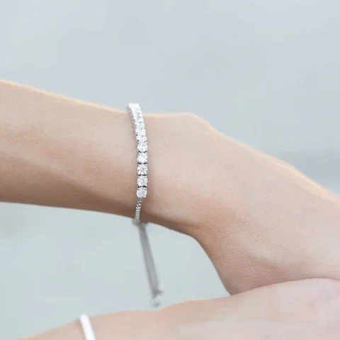 Adjustable rhodium plated sterling silver box chain bracelet with a 2.75" CZ bar. The CZs are 3mm. The bracelet adjusts with a sterling silver stopper bead.