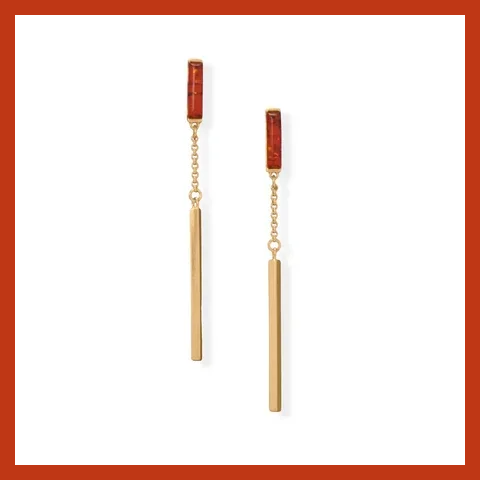 24 Karat Gold Plated Baltic Amber Bar Drop Earrings